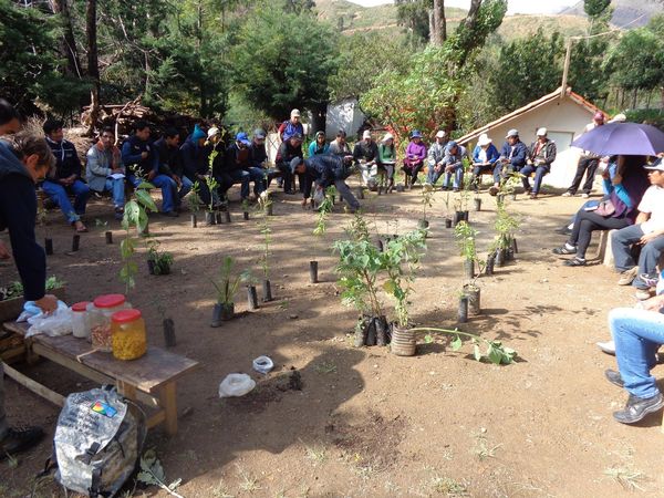 We kweken (125.000) bomen vanuit zaaigoed in boomkwekerijen. Dit is voor de agrariërs, scholen en gemeenschappen in de departementen Cochabamba en Noord-Potosí. In de gemeentelijke kwekerijen stellen we een contract op en ‘bestellen’ we extra bomen, boven op de normale productie.